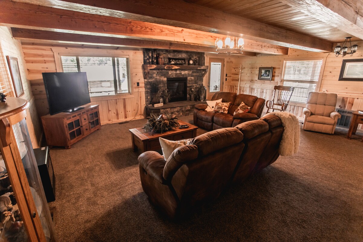 Nasza chata w pobliżu Yellowstone jest w pełni wyposażona we wszystkie udogodnienia, których potrzebujesz do komfortowego pobytu. Pokochasz rustykalny, ale nowoczesny klimat, który pochodzi z drewnianych sufitów i listew, ręcznie robionych mebli i granitowych blatów. W chatce znajdują się dwa duże łóżka, jedno łóżko typu king size w Kalifornii i dwie łazienki z toaletą. Ta chatka jest przyjazna dzieciom i łatwo dostępna z autostrady 20. Parking jest duży, a my mamy również dostęp do rampy dla tych, którzy nie mogą korzystać ze schodów.