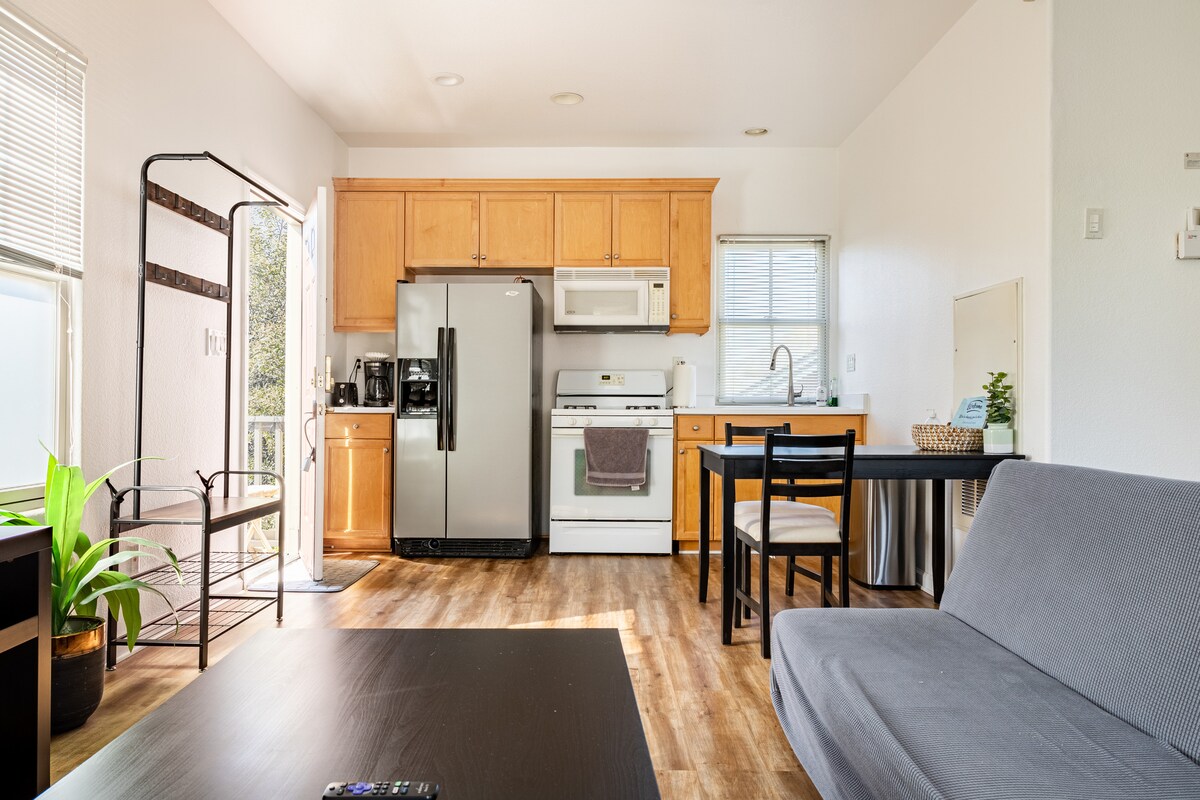 Wiemy, jak ważne jest, aby czuć się komfortowo i zrelaksować po powrocie z długiego dnia zwiedzania. Ten pomysł zainspirował nas do zbudowania naszego apartamentu i zapewnienia każdemu, kto tu przebywa, miejsca na odpoczynku i regeneracji. Mamy nadzieję, że spodobał Ci się pobyt w tym nowoczesnym i skąpanym w słońcu apartamencie typu studio, który oferuje przytulną atmosferę mieszkalną z szybkim dostępem do wielu obszarów śródmieścia, w tym pięknego San Francisco.