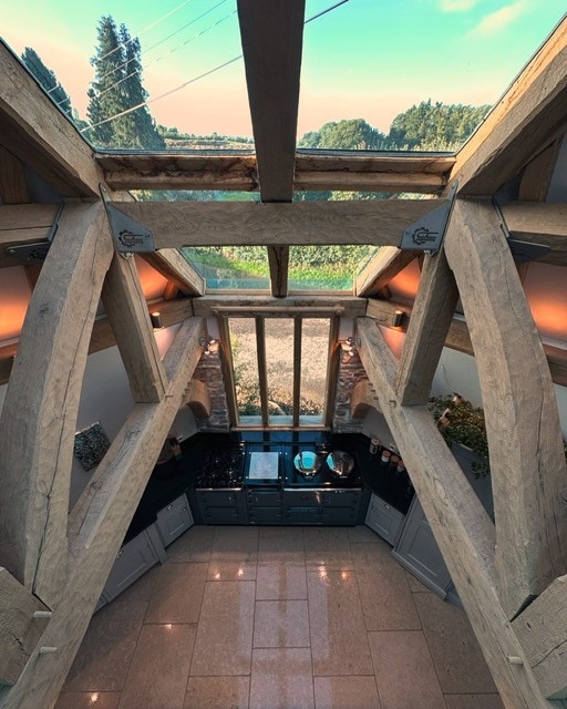 Stodoła ma wspaniałe widoki i została pięknie umeblowana. Posiada w pełni wyposażoną kuchnię z odpowiednią częścią wypoczynkową i dostęp do tarasu z rozległymi widokami. W części dziennej znajdują się 2 bardzo wygodne kanapy. Należy pamiętać, że nasz telewizor nie ma anteny, ale mamy Wi-Fi, co oznacza, że można oglądać telewizję na żywo lub w trybie catch up.