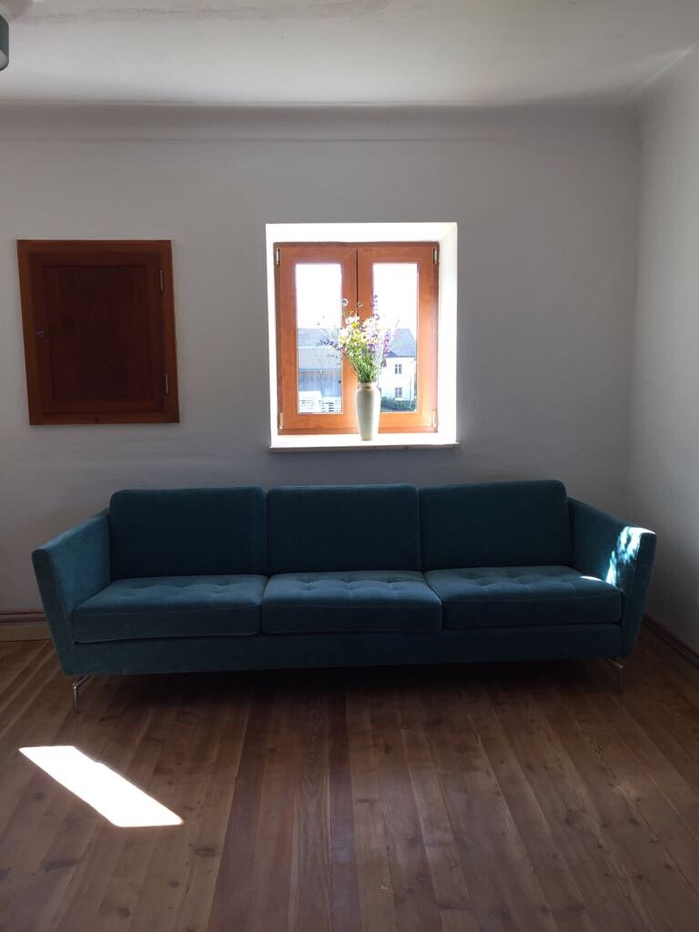 73-metrowy domek w cichej okolicy na obrzeżach z miejscem dla maksymalnie 5 osób, 2 sypialnie, duży salon z podwójną sofą, kuchnią i salonem, łazienką z toaletą i przedpokojem. Południowe i północne tarasy oferują wystarczająco dużo miejsca na posiłki i relaks z widokiem na góry, łąki i lasy. W ogrodzie o powierzchni 250 m2 znajdują się zacienione koje pod drzewami. Dla Twojego pojazdu dostępna jest przestronna wiata garażowa z ładowarką ścienną. Przed domem znajduje się inne miejsce parkingowe.