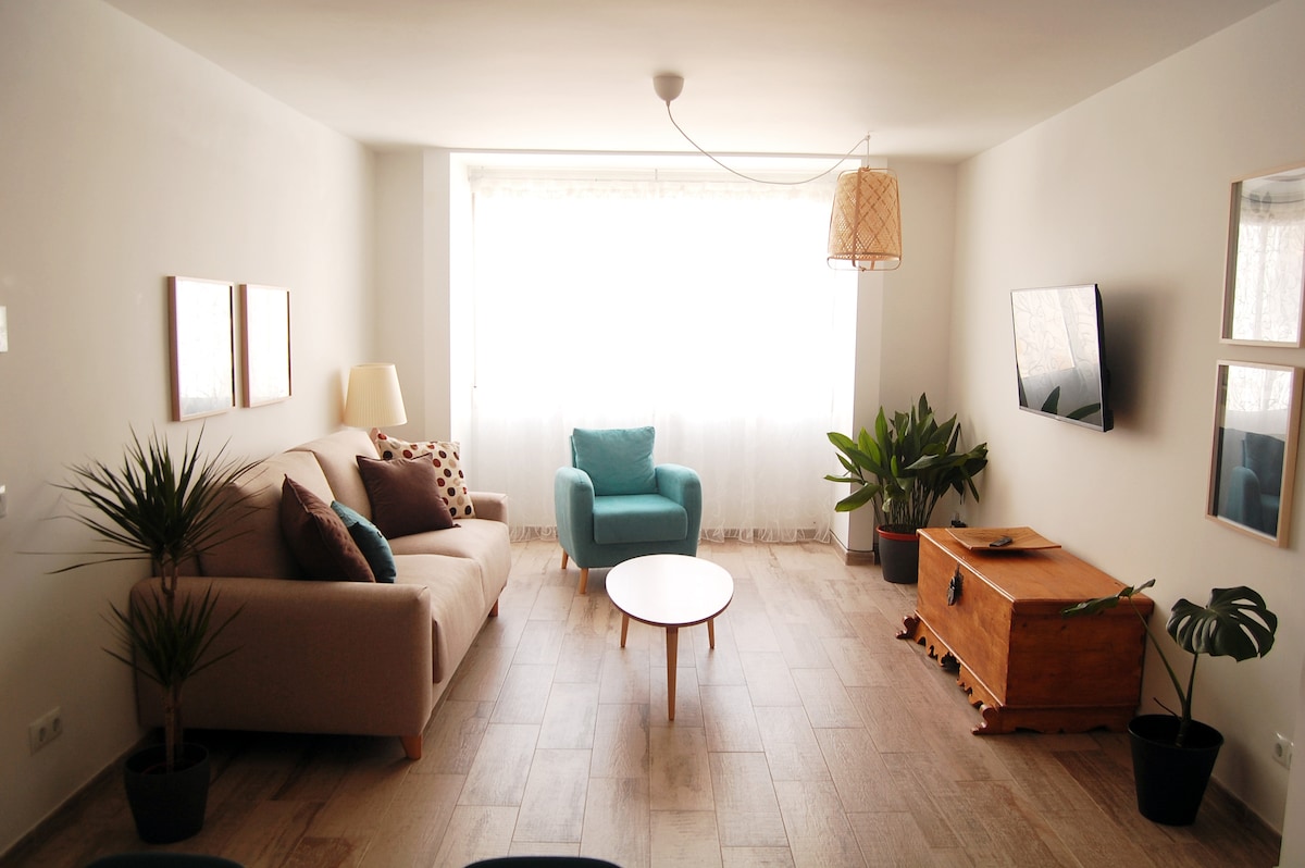 Idealne mieszkanie dla par. Posiada sypialnię z podwójnym łóżkiem typu queen (1,50 x 2,0 m) Jest to zupełnie nowe mieszkanie w spokojnej okolicy w centrum Sewilli, kilka metrów od Alameda de Hércules i zaledwie 20 minut spacerem od monumentalnej dzielnicy miasta. Apartament znajduje się na pierwszym piętrze, z klimatyzacją i ogrzewaniem.