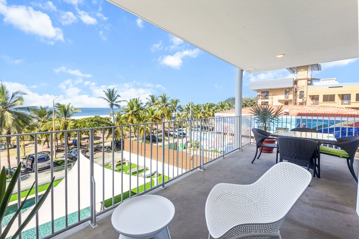 Beautifully renovated, penthouse right ON THE BEACH! Amazing ocean views with multiple balconies and PRIVATE roof top terrace. Gorgeous 3 tier pool area and fast WiFi with 2 Smart TVs. Just steps to the beach and 10-15 minute walk to dozens of restaurants and shops! Gated complex with 24/7 security. Tons to do in and around Jaco, everything from world class fishing and surfing to rain forest waterfall hikes, to ATV tours, whitewater rafting and zip lining, etc Enjoy the Pura Vida lifestyle 😊!
