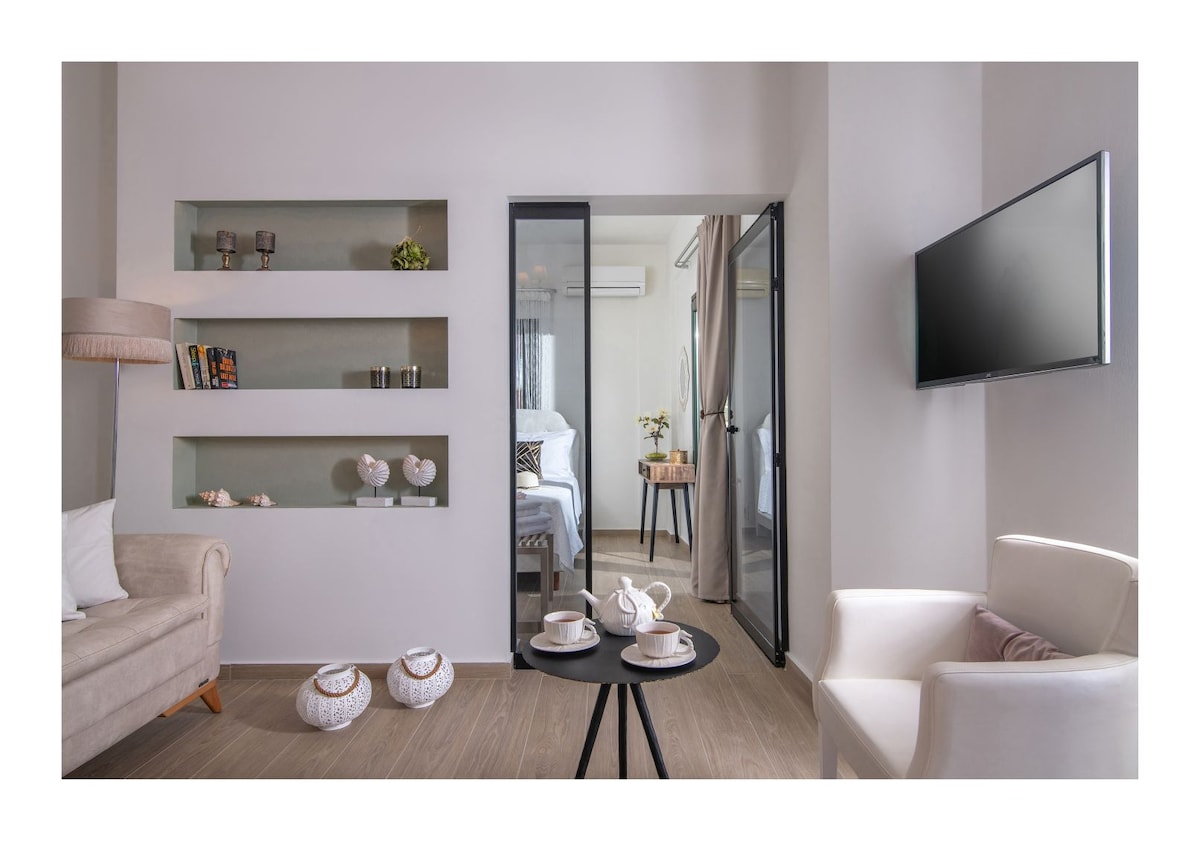 Witamy w THEATRO Living Luxury Apartment, Twojej stylowej bazie w samym sercu Hersonissos. Nasz w pełni odnowiony apartament łączy wygodę, wystrój i odrobinę luksusu, idealny na relaksujące wypady lub tętniące życiem przygody. Niezależnie od tego, czy zwiedzasz Kretę jako para, rodzina, grupa przyjaciół, THEATRO Living Luxury Apartment oferuje wyrafinowany pobyt w centralnej lokalizacji w pobliżu plaż, restauracji i najpopularniejszych miejsc na wyspie. Żyj nowoczesnością. Odpoczywaj w dobrym stylu. Zatrzymaj się w THEATRO.