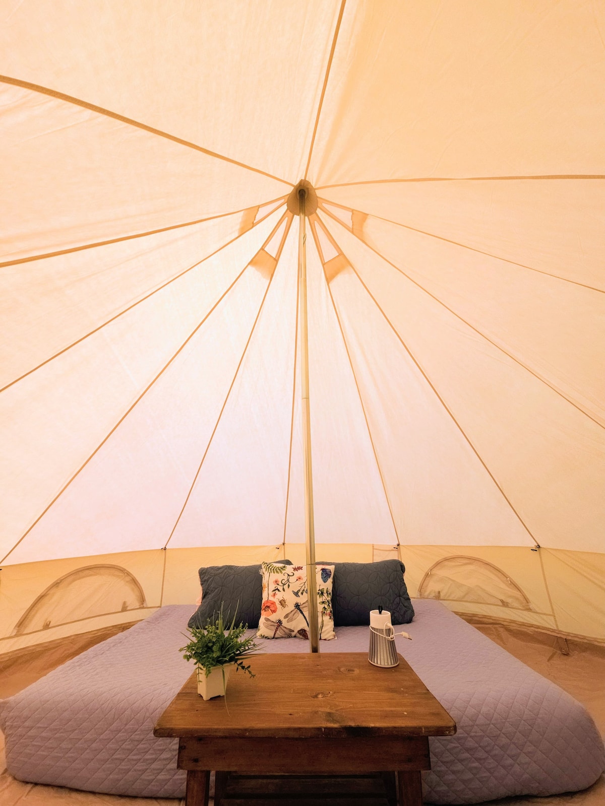 Wybierz się na glamping i odpocznij na łonie natury, nie rezygnując z komfortu. Zrelaksuj się w prywatnym miejscu, otoczonym zapierającą dech w piersiach scenerią i zaprojektowanym z myślą o niezapomnianym pobycie. Odpocznij w wygodnym łóżku i przeżyj magiczne chwile przy ognisku – idealny sposób na zakończenie dnia. Łazienka i prysznic znajdują się w odległości 100 metrów, co zapewnia prywatność i kontakt z naturalnym otoczeniem centrum ekoturystyki nad jeziorem.