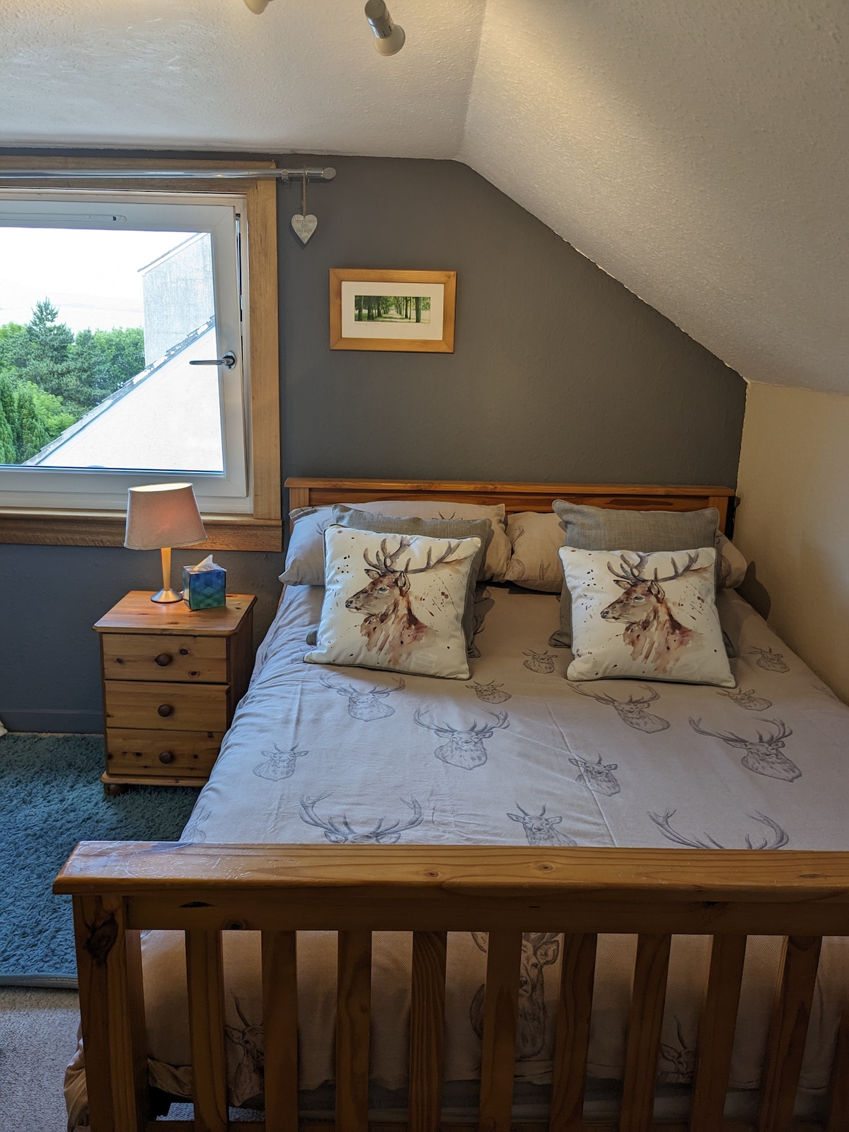Private loft space in detached house. Host lives on ground floor, shared entrance. Situated in the small community of Keose in the North Lochs area of Lewis. Stornoway is a short 20 minute drive, and Harris about 30 minutes. Surrounded by nature with trees, chickens, dogs and horses, all close by. The island is served by two ferry routes. Booking ahead of time is essential, especially during peak season.