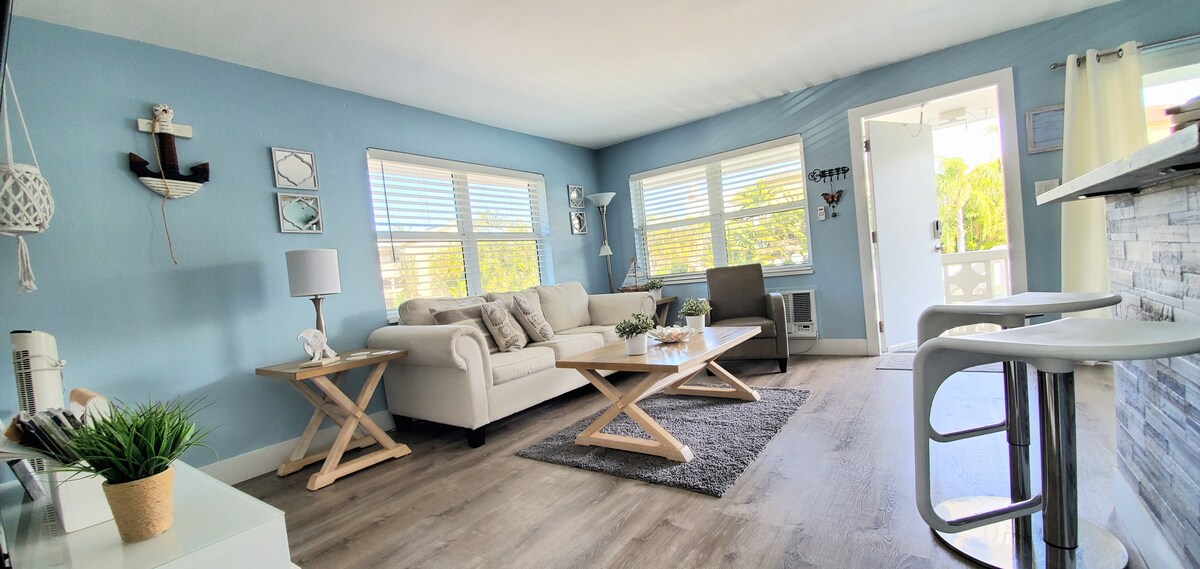Witamy w oazie wypoczynku w Pompano Beach, zaledwie 1,6 km od plaży. W tym przytulnym studio znajduje się łóżko typu queen, odnowiona łazienka i aneks kuchenny. Korzystaj z inteligentnego telewizora, szybkiego internetu i klimatyzacji lub zrelaksuj się na prywatnym patio, gdzie możesz grillować, opalać się lub odpoczywać. W pobliżu znajdziesz lokalne restauracje, sporty wodne i golf. Dzięki prywatnemu podjazdowi, zadaszonej wiacie (ładowanie pojazdów elektrycznych Nema Outlet) i miejscu na 3 samochody, to studio jest idealną bazą wypadową do odkrywania uroku wybrzeża południowej Florydy.