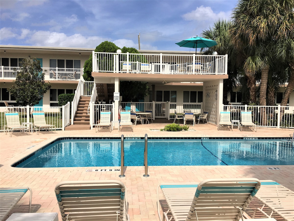 Piękne mieszkanie z 1 sypialnią położone bezpośrednio na wybrzeżu z basenem z podgrzewaną wodą. Ta jednostka NIE ma widoku na wodę z apartamentu, ALE ma niesamowite widoki na śródlądową drogę wodną z patio/basenu. Ciesz się oglądaniem jachtów i podziwianiem niesamowitych zachodów słońca z przystani. Praca z domu, 1 przecznica od plaży! Cicho i spokojnie. W odległości spaceru do wielu sklepów i lokalnych udogodnień! Idealne dla par, młodych rodzin i grup przyjaciół podróżujących razem.