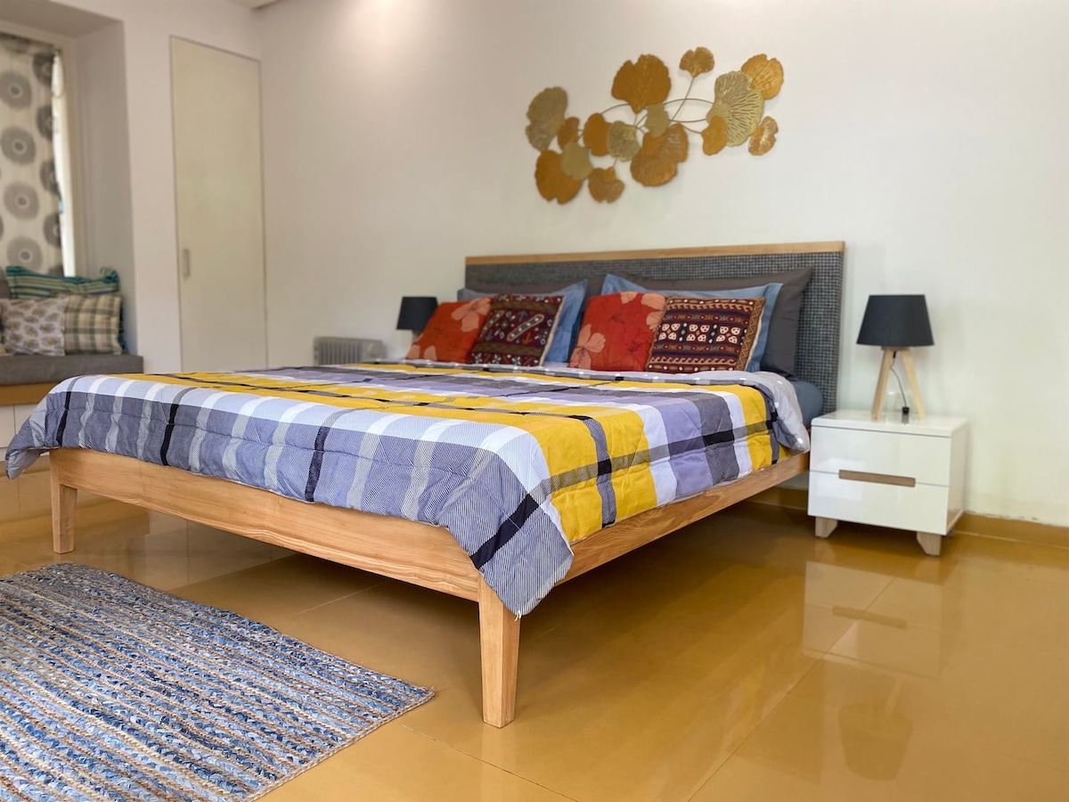 Poczuj się jak w domu w tym centralnie położonym mieszkaniu z 1 sypialnią, zaledwie kilka minut spacerem od stacji metra Sector-34 w samym sercu Noida. To mieszkanie, kupione przez moich rodziców w 1997 roku i wypełnione 25 latami wspomnień, jest teraz przytulnym miejscem na pobyt z Airbnb. Najważniejszy jest piękny ogród wokół domu – idealny do wypicia porannej herbaty lub wieczornego piwa. Sklepy, codzienne potrzeby i spokój sprawiają, że jest to idealny dom. Spokojna, pozytywna przestrzeń dla rodzin szukających komfortu i wygody.