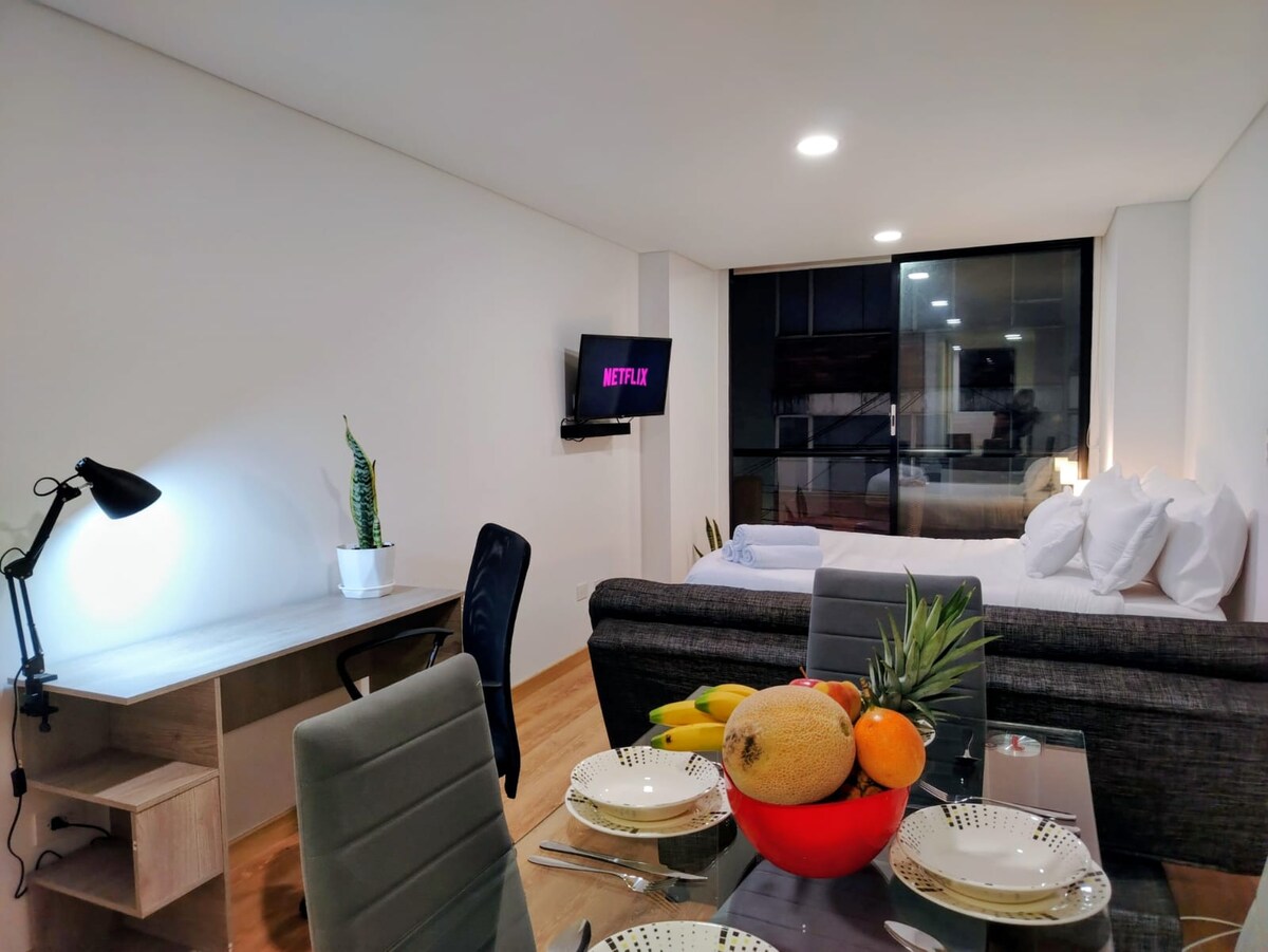 Aparta Estudio Full equipped, Entrance with smart digital foreneer. CAŁODOBOWY monitoring i recepcja. Obsługa Wi-Fi i Netflixa, dzięki czemu poczujesz się jak w domu. Znajduje się w Chapinero, ekstrategicznej części miasta z łatwością transportu publicznego, w pobliżu centrów akademickich, supermarketów, obszarów finansowych, centrów handlowych, atrakcji turystycznych, stadionu el Campin, Movitsar Arena i dużego zapotrzebowania na gastronomię. Również za dodatkowe niespodzianki z uroczym wystrojem.