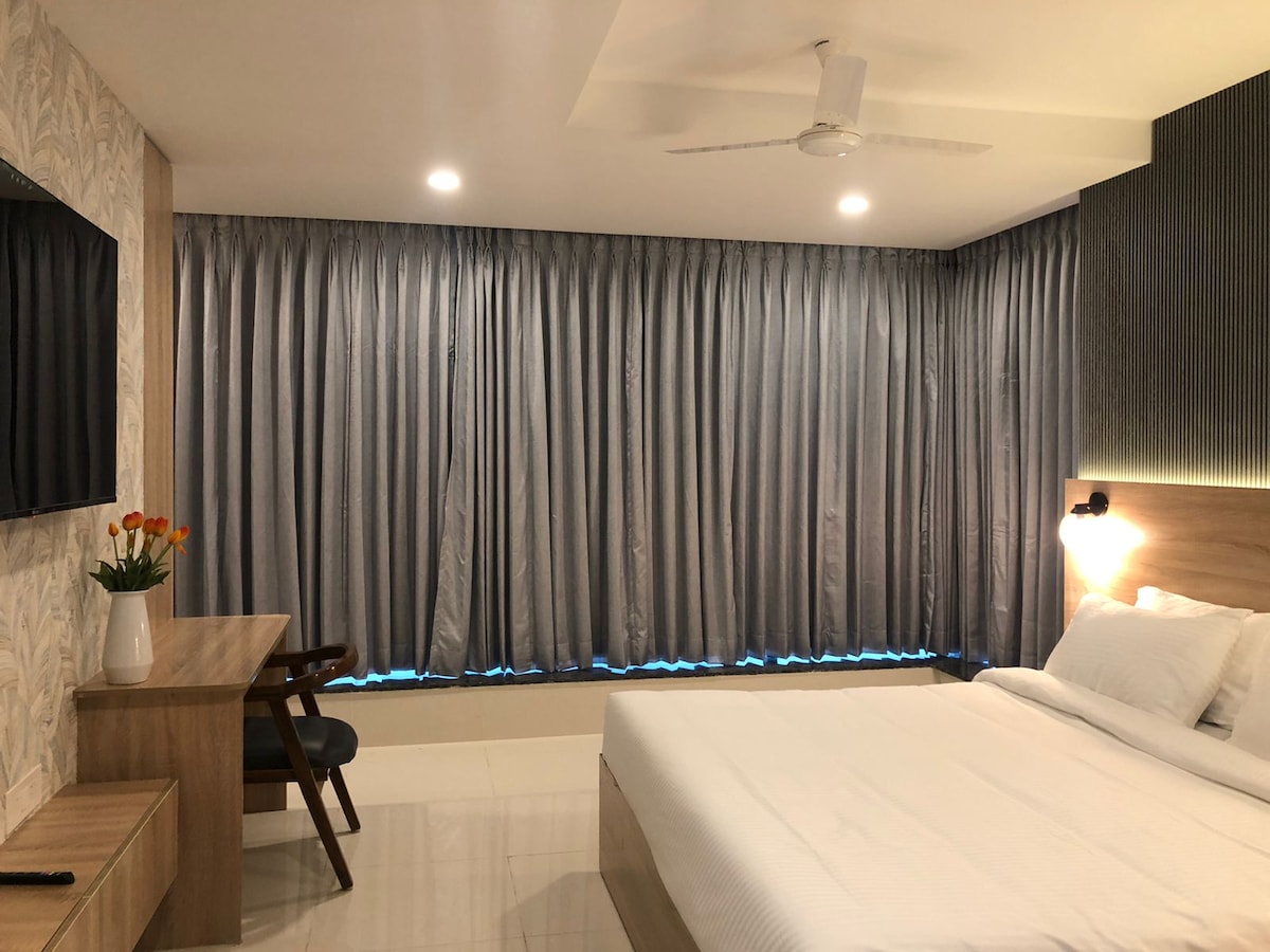 Experience luxury and comfort in our Executive Suite in Hyderabad, perfect for business travelers or couples seeking a premium stay. This elegantly furnished suite features a spacious bedroom, modern ensuite bathroom, high-speed Wi-Fi, air conditioning, and a dedicated work desk. Located in a prime area with easy access to IT hubs, shopping centers, and restaurants, it offers both convenience and class.
