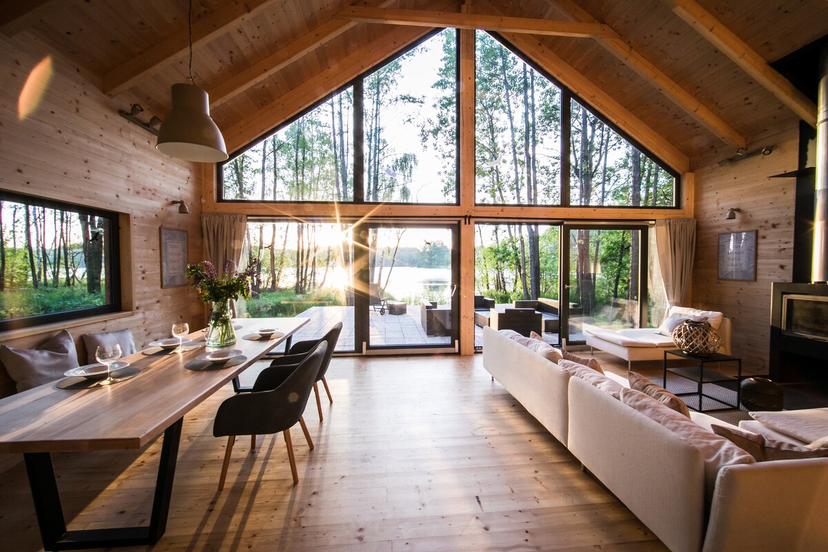 Dom nad jeziorem z prywatną plażą