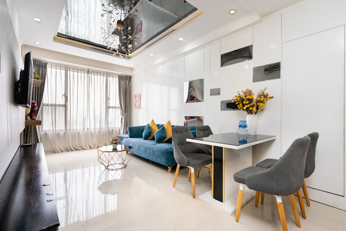 The apartment is beautifully designed in Wabi Sabi style located in the high frequency of ZENITY CAPITALAND Central Building District 1, artistic style, resort facilities swimming pool_spa bath_gym_meeting room, private working room, garden BBQ area, children 's play area, large air-conditioned lounge wifi at the gut, All bedroom windows and balcony have a panoramic view of the entire city. Wyjątkowy, luksusowy, elegancki apartament