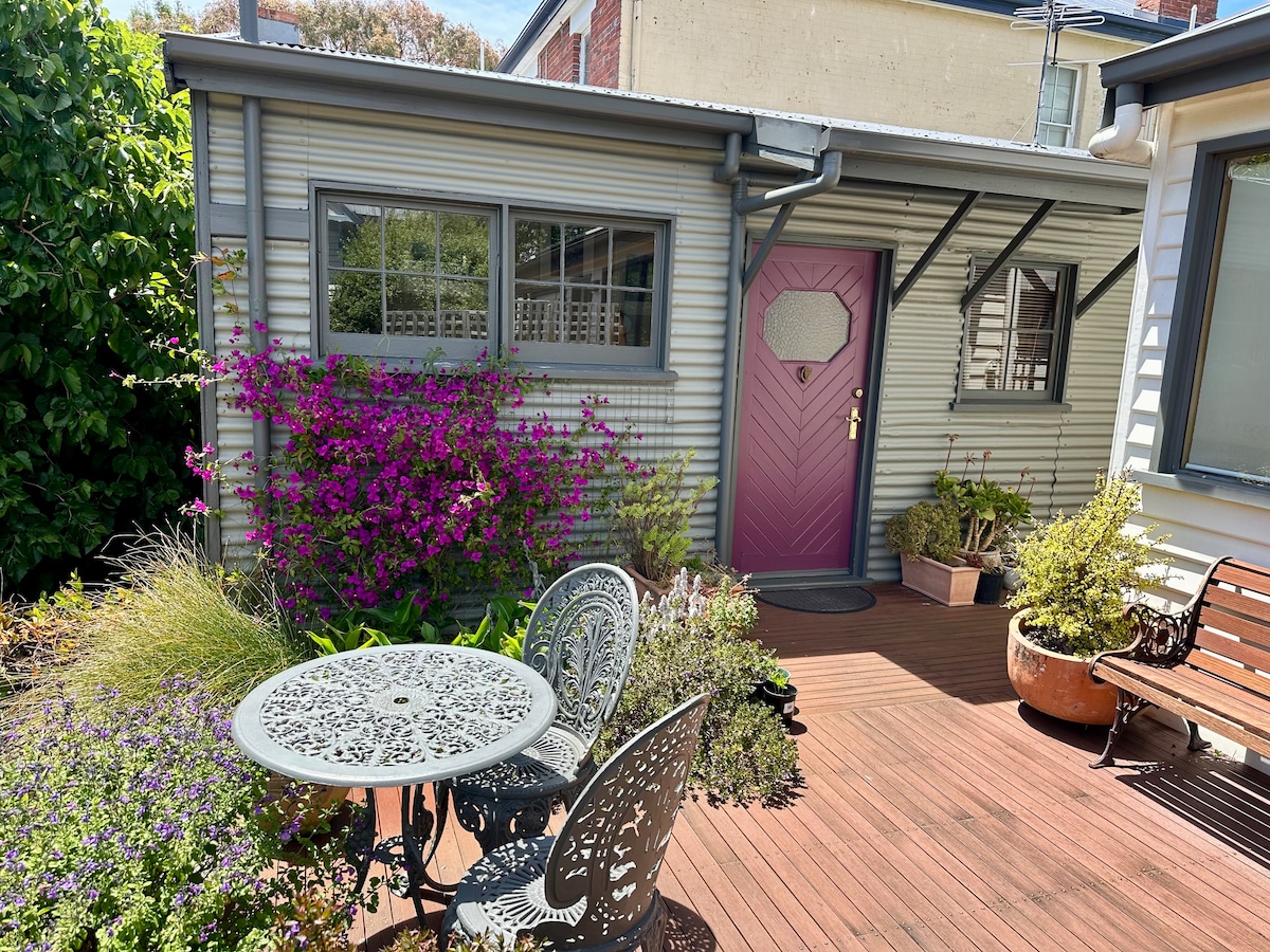 Zrelaksuj się w tym wyjątkowym i spokojnym miejscu w pięknym prywatnym ogrodzie. Nasz romantyczny domek jest pełen osobliwego uroku i jest bardzo wygodny, przytulny i dobrze wyposażony. Domek jest częścią naszego zabytkowego domu z 1880 roku i kiedyś była to pralnia. Podziwiaj oszałamiające widoki na Kunanyi Wellington w całym swoim zmiennym świetle i nastrojach z jadalni na świeżym powietrzu lub salonu. W samym sercu historycznej dzielnicy South Hobart, w której znajdziesz wiele kawiarni, pubów i sklepów.