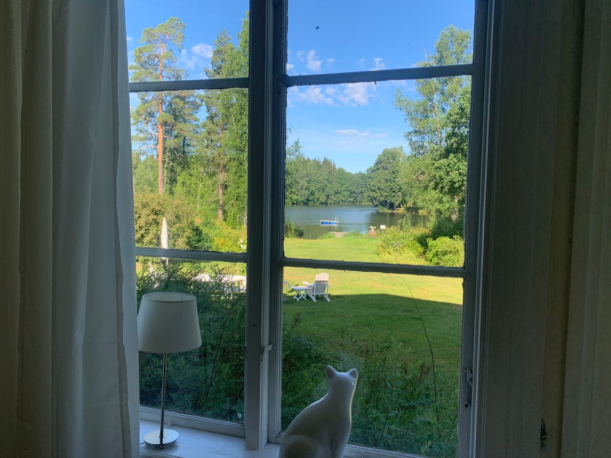 Fantastyczny widok na jezioro z dużej willi w Stjärnsund.