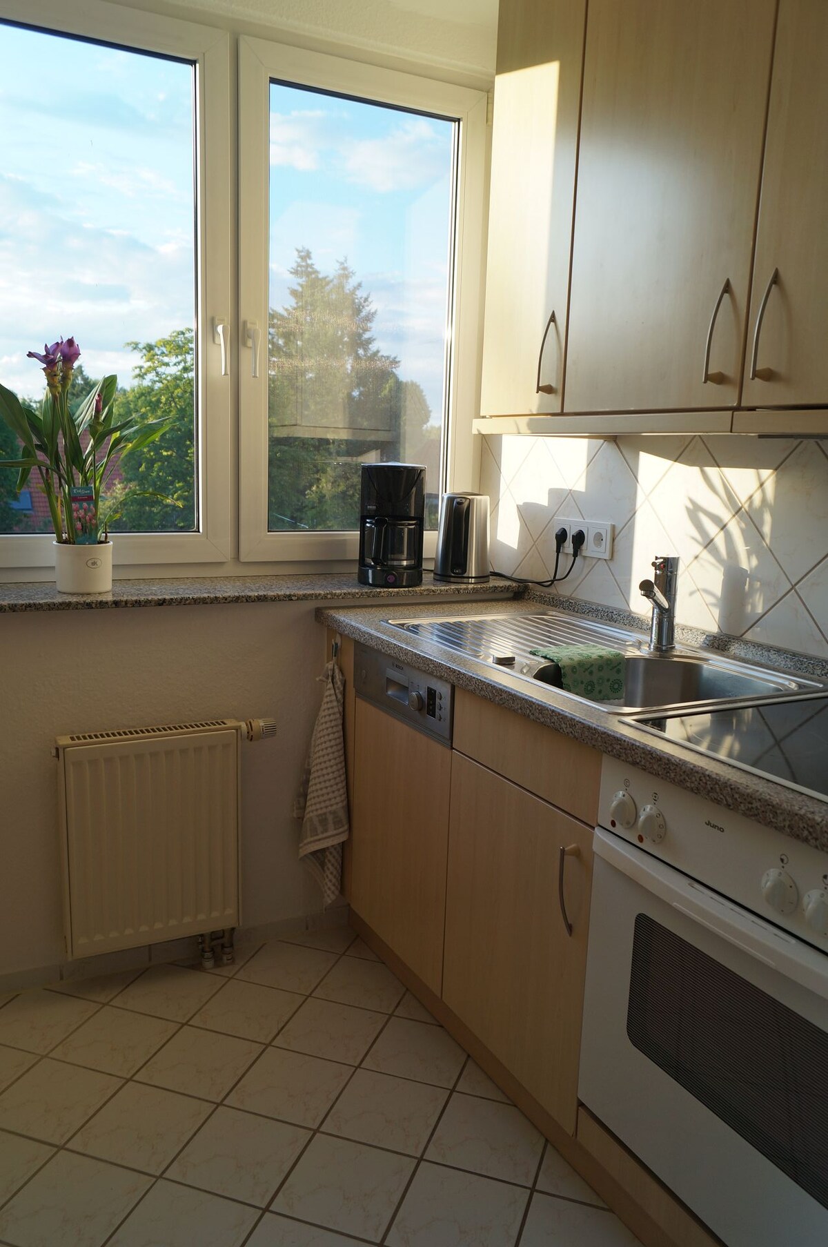 Mieszkanie na wypoczynek lub kwatery rzemieślnicze w Hohen Neuendorfer Bestlage, na północ od Berlina: Ciesz się przyjemną chwilą w ekskluzywnej atmosferze w przytulnym, w pełni wyposażonym apartamencie na poddaszu. – 2 pokoje (4 łóżka), kuchnia, łazienka z prysznicem, balkon – parking przed domem – Smart TV, WLAN – Lodówka, Kuchenka, Piekarnik, Zmywarka, Ekspres do kawy, Ekspres do kawy, Czajnik, Grill, Toster – Pościel, Ręczniki
