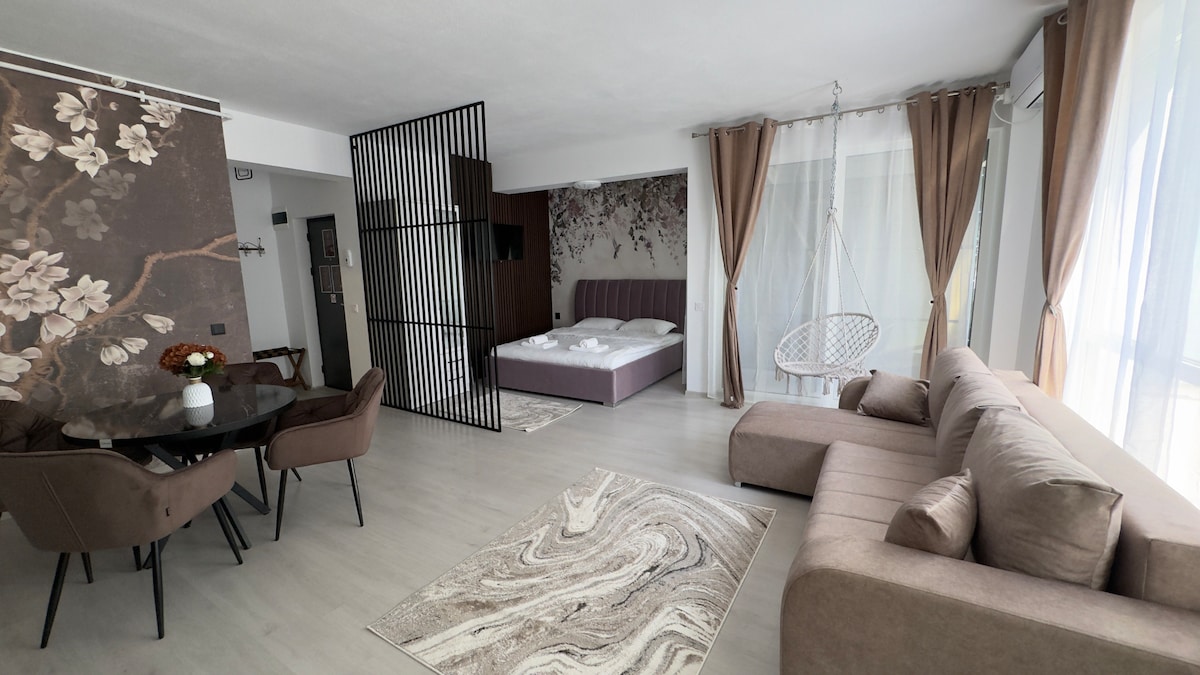 Podróżujesz służbowo lub potrzebujesz profesjonalnej, wygodnej przestrzeni w pobliżu lotniska w Klużu? Ten w pełni wyposażony apartament znajduje się zaledwie 5 minut drogi stąd i oferuje wszystko, czego potrzebujesz do produktywnego i spokojnego pobytu. Samodzielne zameldowanie, szybkie Wi-Fi i udogodnienia premium wliczone w cenę. Zaprojektowany z myślą o osobach podróżujących służbowo, apartament łączy w sobie eleganckie, nowoczesne wnętrza z inteligentnymi funkcjami i cichym otoczeniem, idealne do pracy i relaksu. Skorzystaj z zakwaterowania o wysokim standardzie.