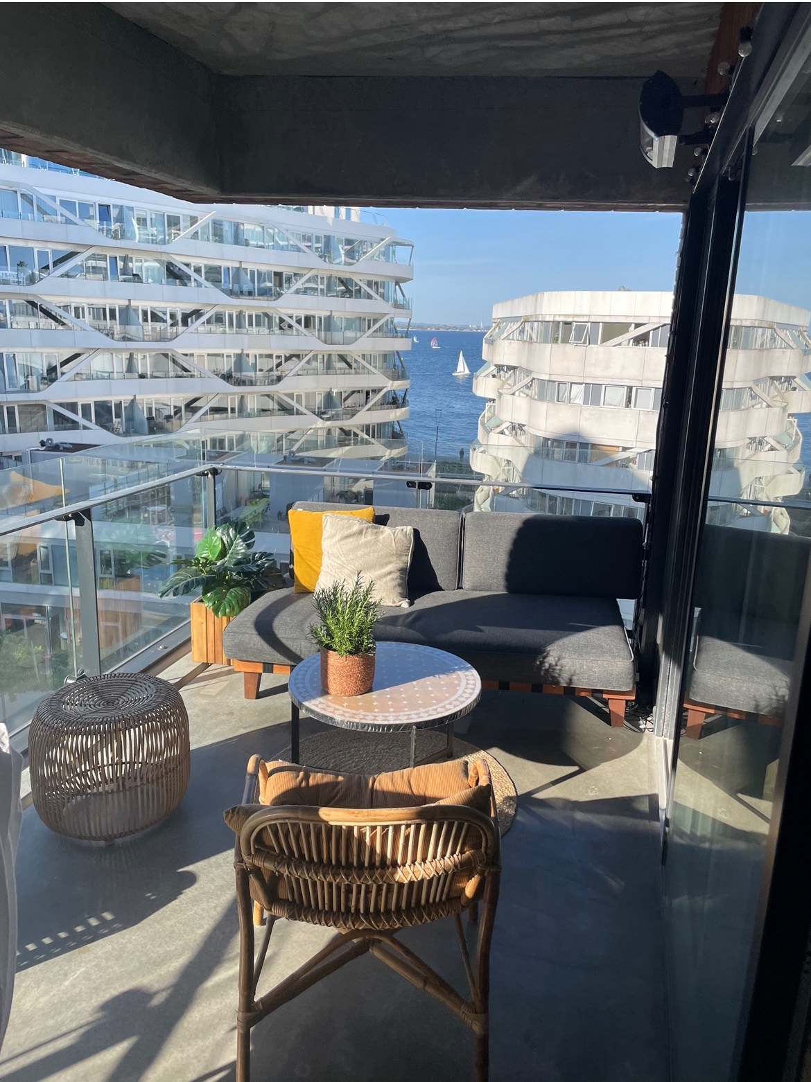To piękne i przyjazne mieszkanie o powierzchni 85 m2 m z 2 balkonami znajduje się w pierwszej linii na Aarhus Ø, w międzynarodowym centrum żeglarskim. Możesz cudowny widok na wodę / wejście do przystani, w pobliżu Aarhus C i lasu. Przytulnie urządzony, z designerskimi meblami i dziełami sztuki na ścianach. Ciesz się porankiem w słońcu na małym balkonie i lampką wina po południu / wieczornym słońcem na dużym balkonie widokowym.