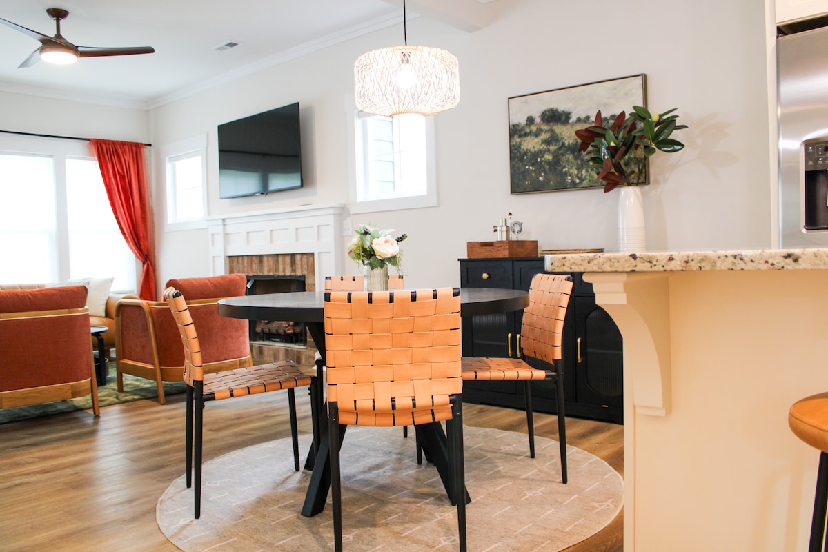 Ciesz się wyjątkowo zaprojektowanym doświadczeniem w tym centralnie położonym miejscu - czy to w mieście do gry w golfa, jazdy konnej, czy po prostu cieszenia się naszym uroczym południowym miastem. Zaledwie przecznicę od restauracji, sklepów, browarów i teatru przy Broad Street, ten dwupiętrowy domek z dwiema sypialniami (i pracownią artystyczną!) ma wszystko, czego potrzebujesz, aby cieszyć się hrabstwem Moore. Zrelaksuj się w jednym z naszych starannie wyselekcjonowanych pokoi lub zabierz go na zewnątrz do naszego podwórka/winnicy na letniego grilla lub przytulną pogawędkę przy kominku.
