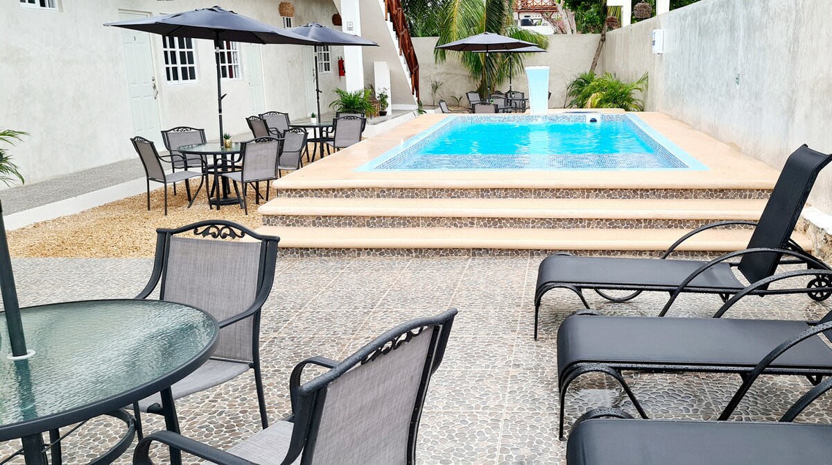 Suite Cielo, ma duże okno z widokiem na Morze Karaibskie, obudzisz się w obłokach ! Tylko 1 przecznica od plaży. W najbardziej mieszkalnej dzielnicy na wyspie. Około 15 minut od centrum na miły spacer. Nasze pokoje są zaprojektowane w taki sposób, aby zapewnić naszym gościom maksymalny komfort. Mamy jeden z najlepszych internetu na rynku Starlink. Jeśli więc musisz popracować, nie będą mieli problemu z połączeniem internetowym.