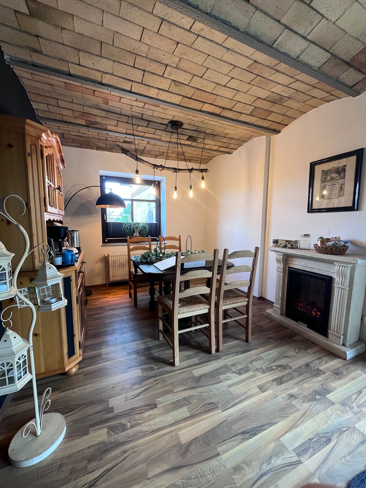 Übernachte im ehemaligen, restaurierten Kuhstall mit Gewölbe-Ziegeldecken auf „unserer kleinen Farm“ mit kleinen Tierbestand und in ruhiger Lage. Wir bieten eine 75 qm Ferienwohnung mit einem verfügbaren Doppelbett, was u.a. auch als zwei Einzelbetten stellbar ist und einem Schlafsofa (1,4x1,8 m) im separaten Raum. Zur Verfügung steht auch ein 0,9x2,0 m großes Schrankbett im Wohnzimmer. Ebenerdig zugänglich mit einem separaten Hauseingang und Terrasse.