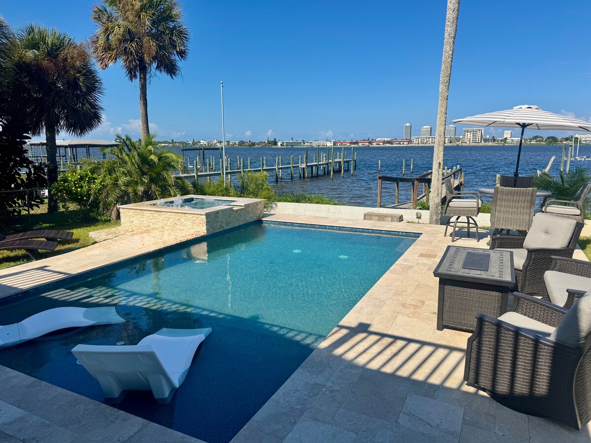 Zamieszkaj w tym nadmorskim domu i korzystaj z wszystkich zalet życia nad wodą. Ciesz się basenem w stylu kurortu nad rzeką z pełnowymiarowym tarasem do opalania i przestronną, spokojną wanną z hydromasażem. Z balkonu apartamentu głównego o długości 30 stóp można podziwiać panoramę miasta i rzekę. Obserwuj delfiny, manaty i czaple z podwórka. Tylko 5-10 minut do Daytona Beach, Speedway, Ocean Center, Pictonia, centrum miasta, sklepów, restauracji i nie tylko!