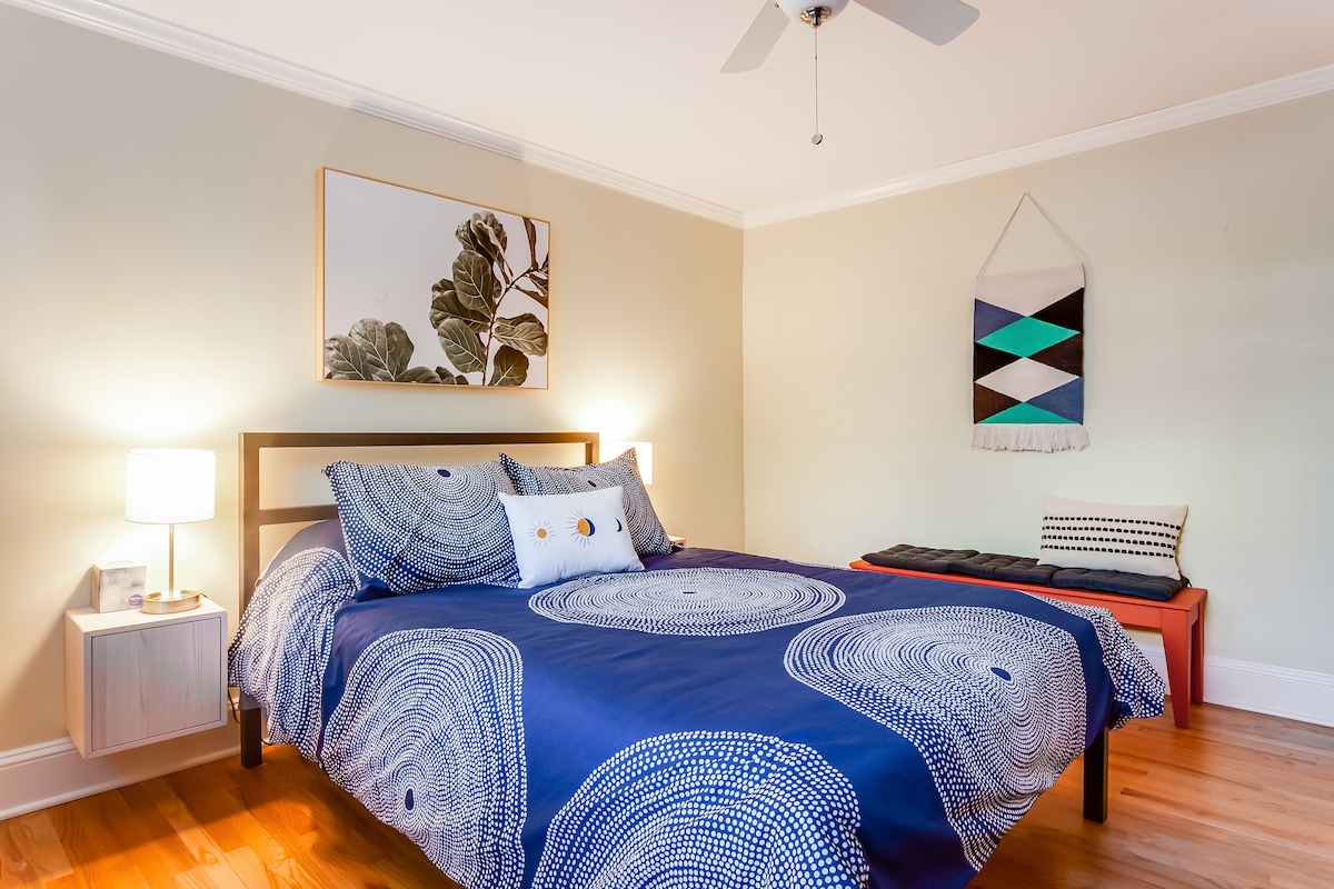 Wybierz się na spacer do BeltLine, Piedmont Park lub Ponce City Market! Mom's Basement to spokojny, czysty i przytulny apartament w Midtown, zaprojektowany z południową gościnnością i duszą. Ten cichy, przyjazny rodzinom i zwierzętom dom, który goście uwielbiają, znajduje się naprzeciwko malowniczego parku Orme, a jednocześnie zaledwie kilka minut od najlepszych kawiarni, galerii sztuki i lokali nocnych w Atlancie. Oaza komfortu i wygody z bezpłatnym parkingiem, łatwym samodzielnym zameldowaniem i przemyślanymi akcentami – mama przygotowała łóżko specjalnie dla Ciebie!
