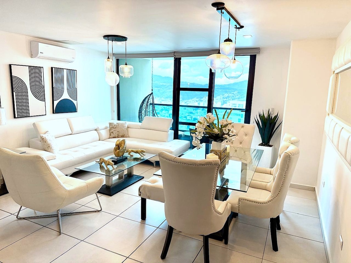 Ciesz się stylowym doświadczeniem w tym luksusowym miejscu w okolicy najbardziej ekskluzywnej, cichej i centralnej części Tegucigalpa. Wyjątkowe miejsce do spędzania czasu w rodzinie i w środowisku pracy. Oferuje usługi: – Wi-Fi 100 MB, czerwona 5G – Sterowanie głosowe (Alexa) – Netflix, Max i Prime - Wejdź bez przechodzenia przez lobby, zamek na klucz - Rygorystyczne całodobowe bezpieczeństwo straży -50”TV in Sala, 43” in main room and 34” in 2 bedrooms. - Gotowanie zaopatrzone i gotowe do gotowania -Centro de Lavado