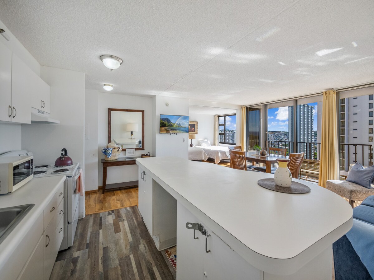 Welcome to your perfect island getaway for the 'Ohana! To czyste i wygodne studio znajduje się na 18 fl. budynku w stylu kurortu. Zaledwie jedną przecznicę od plaży i kilka kroków od popularnych lokalnych restauracji, sklepów i kawiarni. Nasza przystań obejmuje: łóżko typu queen + rozkładaną sofę typu queen, w pełni wyposażony aneks kuchenny, szybkie Wi-Fi, telewizor, gry rodzinne i sprzęt plażowy na Twoje przygody! Przyjdź i zrelaksuj się, aby odkryć wyspę w naszym domu z wygodą doskonałej lokalizacji!
