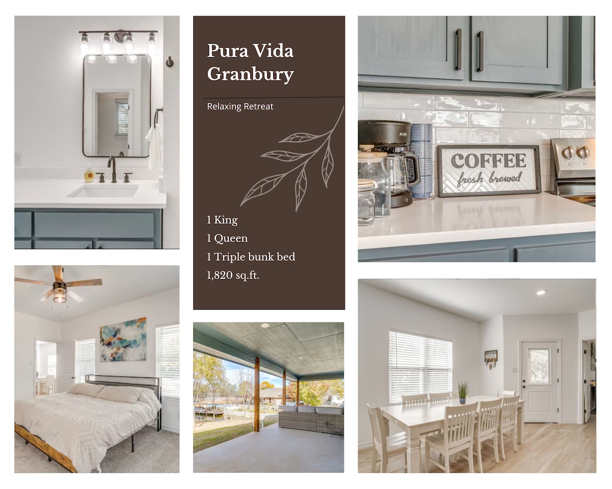 Ten centralnie położony dom znajduje się w samym sercu Granbury, z wieloma udogodnieniami na tyle blisko, aby można było do nich dotrzeć na piechotę. Dom znajduje się zaledwie pięć minut jazdy od centrum miasta i jest położony nad spokojnym kanałem nad jeziorem. W pełni wyposażony pokój gier ze stołem bilardowym, barem, Alexą, 65-calowym telewizorem Smart TV i nie tylko! Telewizory Smart TV w każdej sypialni, w pełni wyposażona kuchnia, materace z pianki memory i zadaszony dok dla łodzi sprawiają, że jest to pożądana lokalizacja. Do dyspozycji gości jest również zadaszona wanna z hydromasażem.
