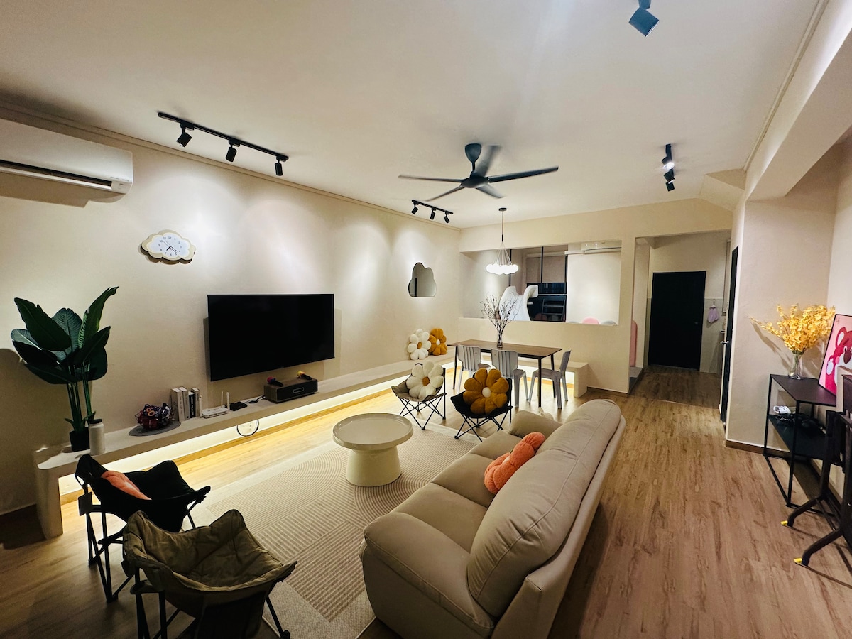 Położony w Taman Sentosa, łatwy dostęp do Midvalley Southkey Mall i JB Town. Apartament z 4 sypialniami z łóżkami typu Queen size (materac King Koil) może pomieścić 9 osób. W pobliżu centrum handlowe i szeroki wybór lokalnych smakołyków: - 2 minuty do Hai Kah Lang 海脚人 - 5 minut do centrum handlowego Mid Valley Southkey - 7 minut do centrum handlowego KSL City Mall - 10 minut do centrum handlowego City Square - 12 minut do JB Sentral Ciesz się filmem dzięki naszemu 65-calowemu telewizorowi Smart TV wyposażonemu w dekoder TV (konto Netflix nie jest dostarczane) Bezpłatny parking dla 4-5 samochodów