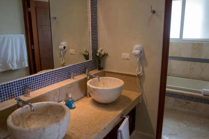 Znajduje się między Zona de Manglar a plażami Morza Karaibskiego, w otoczeniu przyrody, idealne miejsce dla miłośników spokoju. The property is located at front of the Cozumel Country Club Golf Course, in the North Hotel Zone of the Isle of Cozumel, Quintana Roo