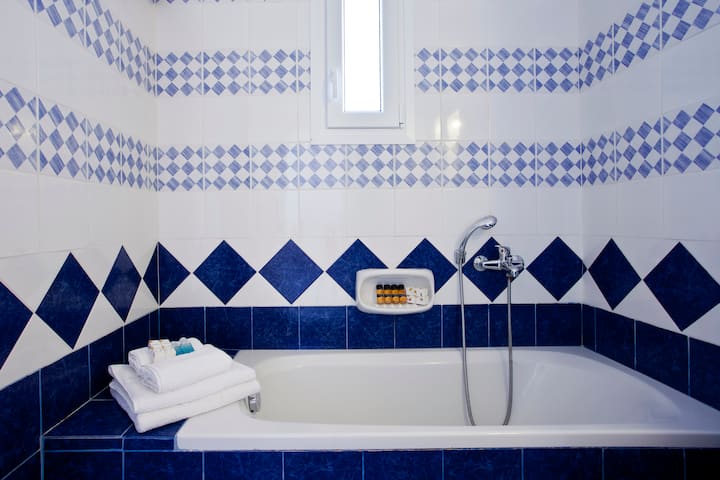 Na podstawie lokalnych przepisów śniadanie obejmuje domowe marmolady, dżemy, ciasta, słodycze, jogurt i ser, przygotowane z produktów z hotelowego ogrodu. Tradycyjna grecka kawa, sok, herbata i słodycze są również oferowane bezpłatnie przez cały dzień. Po południu goście mogą delektować się mrożoną grecką kawą lub raki z winogron z winogron z winnicy na miejscu. Jeśli masz problem z glutenem, poinformuj nas o tym.