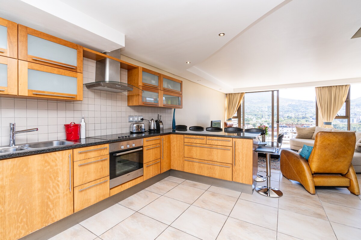Newly renovated in 2025 with a private pool (heated mid October to mid May) with a big terrace and views for life! 100 mbps Internet. 3 bedrooms, 2 bathrooms. Work on remote or enjoy a vacation, this spot is ideal for both! Located on top of Bree Street this penthouse is one of a kind. It boasts an amazing terrace and a private pool overlooking Table Mountain. Close to all trendy restaurants and Waterfront/ the beaches just 10 min away. 24 h security and 2 private garage parkings included.