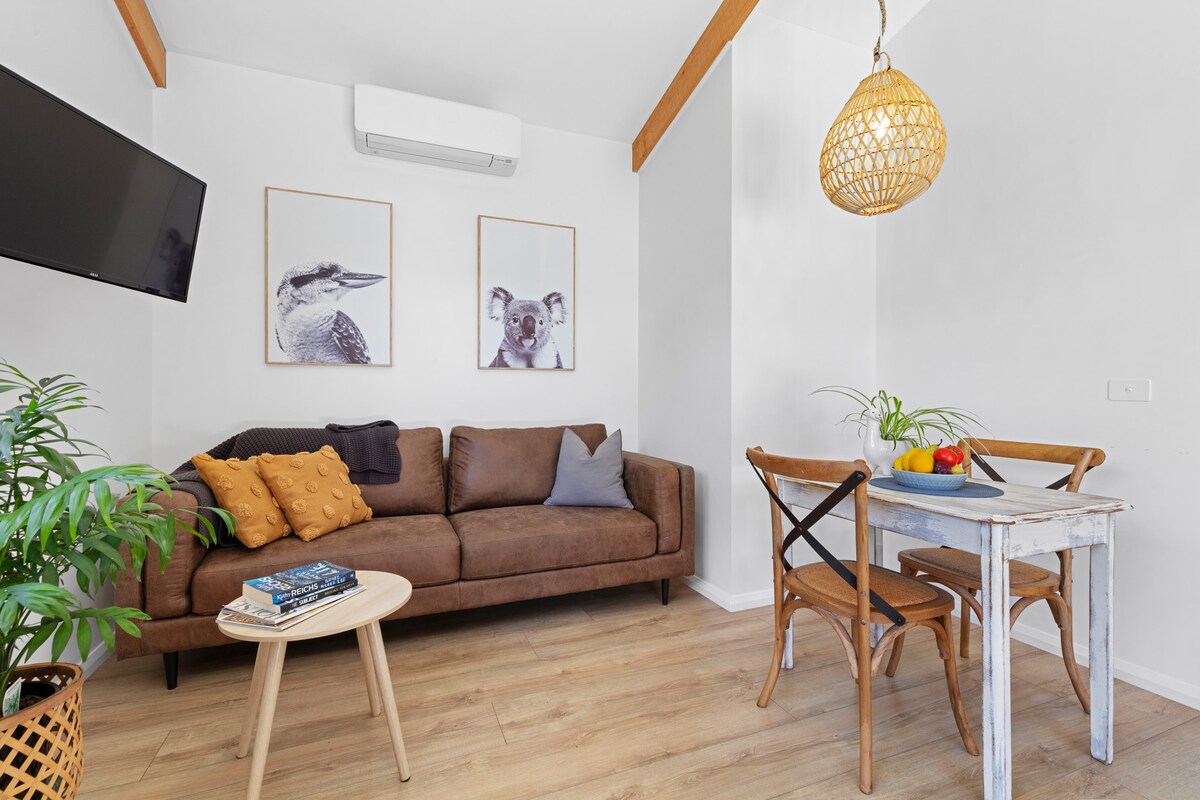 Oddychaj spokojnie, gdy wejdziesz na dziedziniec The Tin Pod. Ta lekka, jasna, nowocześnie urządzona przestrzeń, położona na skraju pięknego buszu, który można odkrywać, natychmiast przeniesie Cię do bardziej zrelaksowanego stanu bycia. Idealne miejsce dla par, aby odmłodzić ciało i umysł. Alternatywnie, jeśli szukasz bardziej aktywnego wypoczynku, możesz wybrać się na spacery, odwiedzić kawiarnie, odkryć trasy rowerowe, pokonać pola śnieżne... wszystko to na progu „The Tin Pod”.