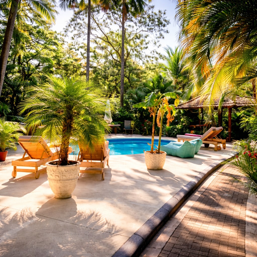 Relaksujący wypoczynek z widokiem na basen i taras