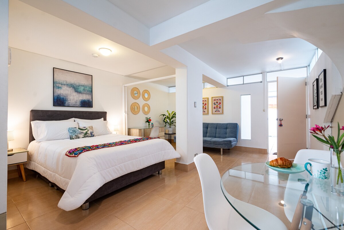 Ciesz się komfortem i prywatnością własnej przestrzeni w tym uroczym miniapartamencie położonym w jednej z najbardziej ekskluzywnych dzielnic Limy. Idealne dla par, samotnych poszukiwaczy przygód lub osób podróżujących służbowo, które szukają spokojnego i wygodnego miejsca na pobyt. Wyposażony we wszystko, czego potrzebujesz, aby pobyt był komfortowy, w tym łóżko typu Queen, łazienkę, kompaktową kuchnię i salon.