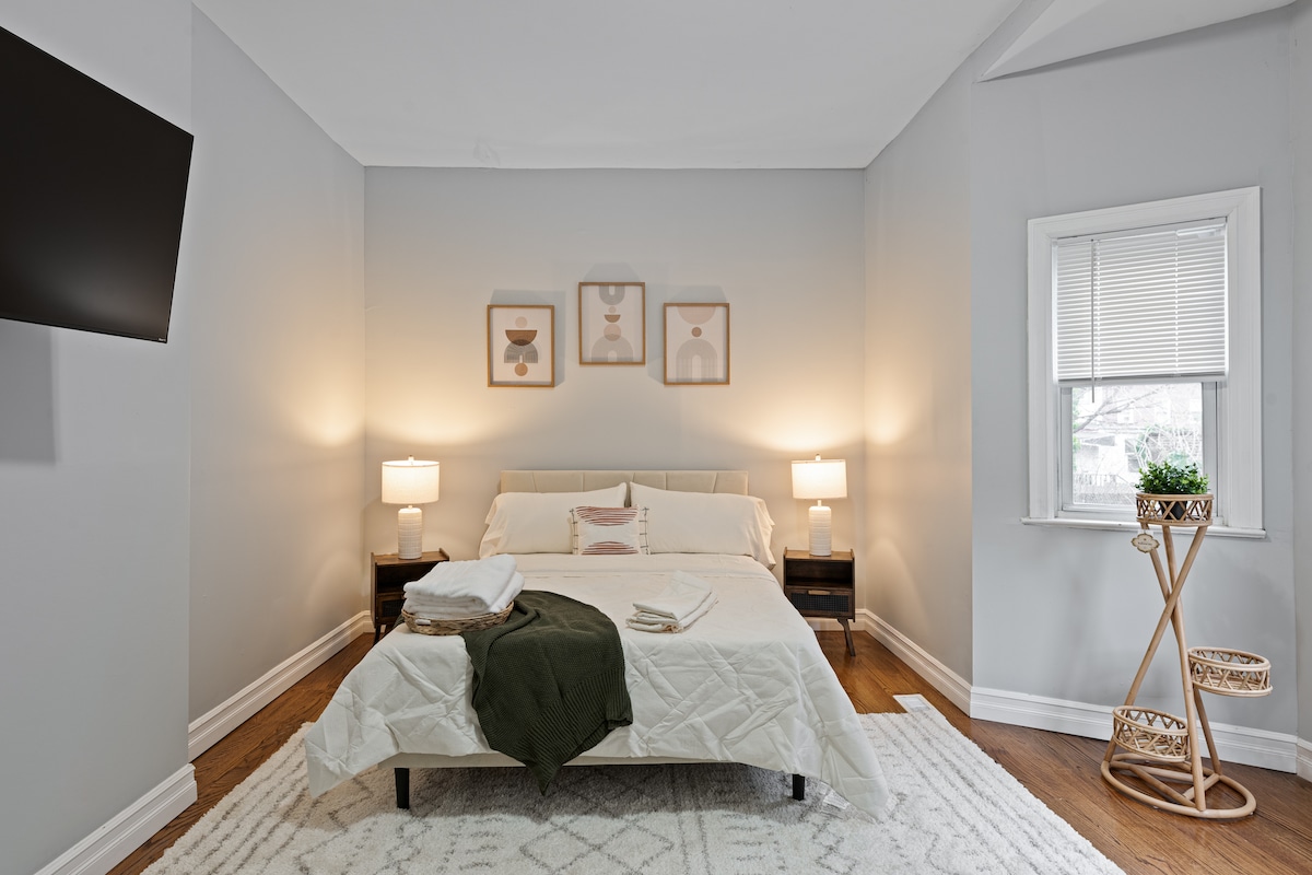 Czeka na Ciebie komfortowy pobyt! Blisko miasta i lotniska Newark! Apartament wyposażony jest w łóżko typu queen z pianką memory foam, kabinę prysznicową z wanną oraz biurko. Jednostka posiada szybkie Wi-Fi (ponad 950 mb/s) i dedykowaną przestrzeń roboczą idealną do pracy zdalnej, z telewizorem Roku w salonie i sypialni. Kuchnia jest w pełni wyposażona, w tym noże, ekspres do kawy, blachy do pieczenia, garnki, patelnie, kubki, zmywarka do naczyń i wiele innych. Apartament posiada prywatny podjazd.