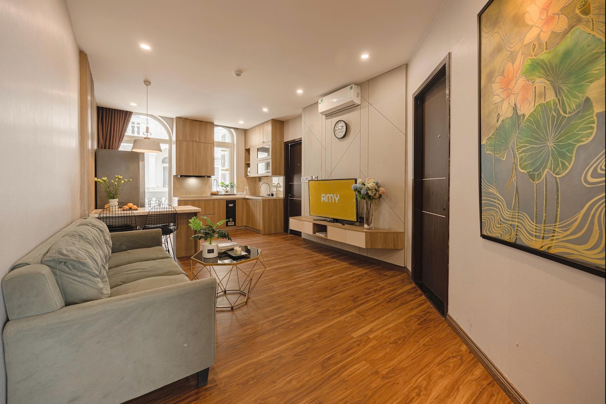 Amy apartment is located on To Huu str., nearby city center, surrounded by others apartment so it's so quite, which is the best choice for both your work and relaxation Our rooms are well-equipped with the modern interior furniture, full equipped kitchen, peaceful atmosphere. Enjoy drinks on the balcony after a long day working is definitely wonderful experience Free cleaning once a week Come and stay at Amy, you absolutely feel like home!