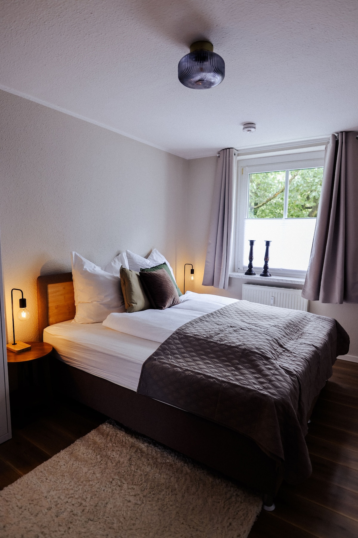 W prywatnym dziedzińcu z dużą ilością zieleni, przytulnie urządzony dom (76 m²) czeka na swoich gości. Samochód można zaparkować bezpłatnie bezpośrednio przed obiektem. Dzięki centralnemu położeniu można szybko dotrzeć do centrum miasta. W zimnych porach roku można zakończyć dzień w salonie przy trzaskającym ogniu w kominku (drewno zapewnia gospodarz). W ciepłej porze roku można zrelaksować się na dużym tarasie (wyłącznie do Państwa dyspozycji) przy lampce wina.