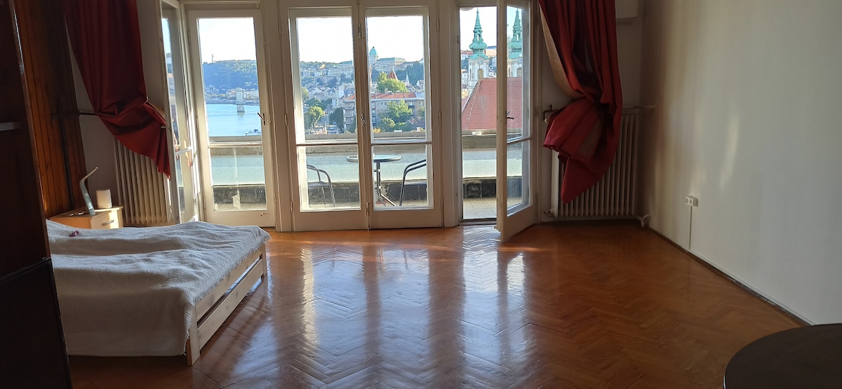 ✨ Stunning top-floor haven in Budapest's heart - perfect for couples, families, or groups up to 4! Features a 4-meter balcony with dining set and sun lounger, offering panoramic views from Buda Castle to MÜPA. Modern luxury meets prime location near VIKING CRUISE dock and Gellért Bath. Fully equipped with queen-size bed and sofa bed. 🌟