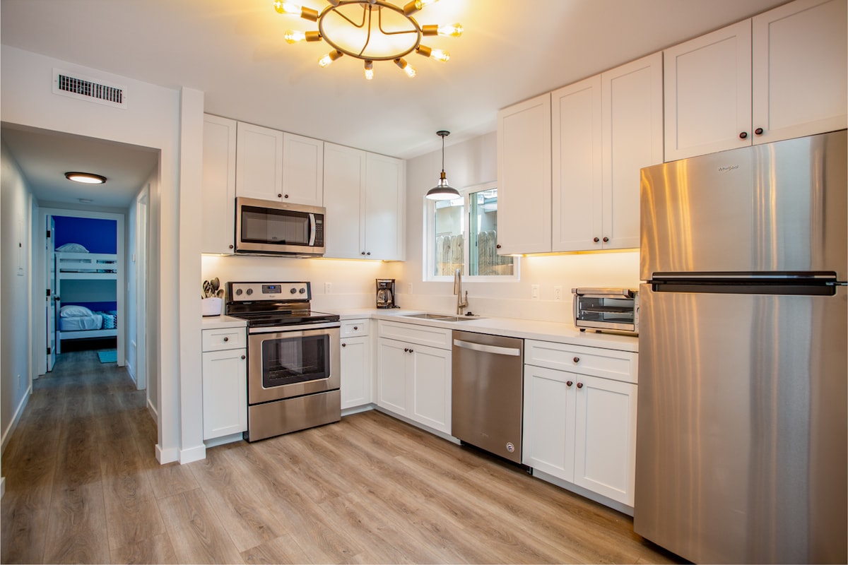 Wybierz się na wypoczynek do naszego nowo wyremontowanego, nowoczesnego domu szeregowego z 3 sypialniami w Huntington Beach, zaledwie 3 przecznice od plaży! Ten przyjazny dla zwierząt dom, w którym wygodnie może spać 8 osób, ma prywatne patio z paleniskiem, w pełni wyposażoną kuchnię i salon z grami. Będziesz mieć łatwy dostęp do plaży, głównej ulicy i lokalnych sklepów. Ponadto możesz korzystać ze wspaniałych dodatków, takich jak bezpłatna ładowarka do pojazdów elektrycznych, sprzęt plażowy i rowery elektryczne do wypożyczenia. Idealne miejsce dla rodzin i grup, które szukają stylowego, relaksującego wypoczynku na plaży.