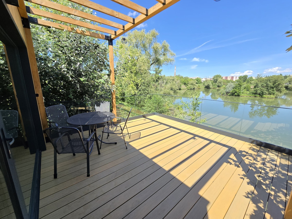 Toto ubytovanie je naozaj jedinečné. Nachádza sa na Alžbetinom ostrove v Komárne, na hranici s Maďarskom v tichej rekreačnej oblasti. Zobúdzať sa budete na spev vtákov. Rannú kávičku si môžete vychutnať v príjemnom prostredí pri východe slnka. Pre športovcov ponúka Komárno tisíce km cyklociest smerom na Bratislavu, Štúrovo, Budapešť, Kolárovo či na Györ. Relaxovať môžete v dvoch termálnych kúpeľoch a to V komárne, alebo v Komárome