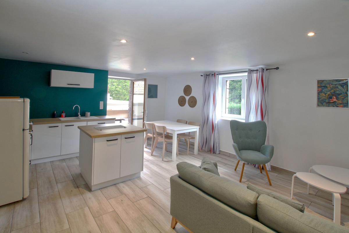 Ładny, funkcjonalny i spokojny apartament w centrum Meyrueis. Ciesz się widokiem na rzekę! Dźwięk wody jest przyjemny w nocy przy otwartym oknie, ale nie słychać go przy zamkniętej podwójnej szybie. Apartament posiada oddzielną sypialnię z podwójnym łóżkiem oraz 1-osobową sofę w salonie (dodatkowa pościel dla 2 osób). Kuchnia wyposażona we wszystkie niezbędne przybory kuchenne. Prysznic, oddzielna toaleta. Samodzielne zameldowanie możliwe i proste.