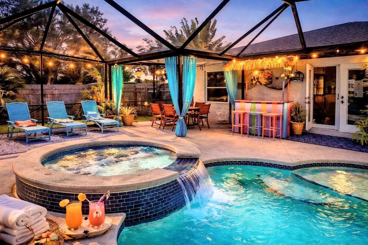 Private Resort Pool • Spa • Waterfall •Night Oasis