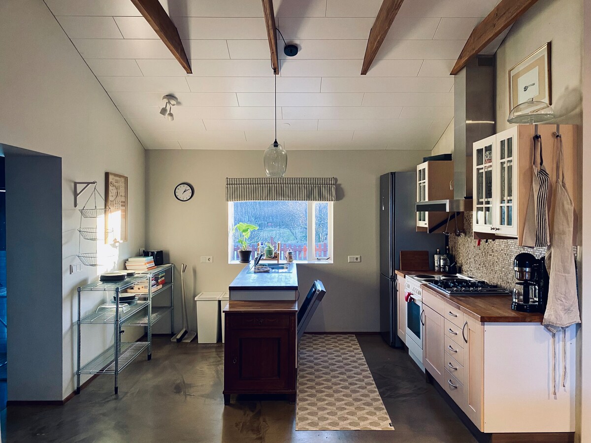 Ten domek znajduje się na rodzinnej farmie koni w pobliżu miast Hveragerdi i Selfoss, 30 minut od Reykjaviku. Prawie wszystko jest ręcznie robione z dużą miłością do szczegółów. Posiada w pełni wyposażoną kuchnię, prywatny taras z grillem i dużą prywatną wannę z hydromasażem z przepięknym widokiem. Dom (30 m2) jest przeznaczony dla 2 osób lub małej rodziny, ale istnieją możliwości noclegowe dla maksymalnie 4 osób dorosłych. Oferujemy prywatne wycieczki konne. nasze domki: https://www.airbnb.com/users/93249897/listings