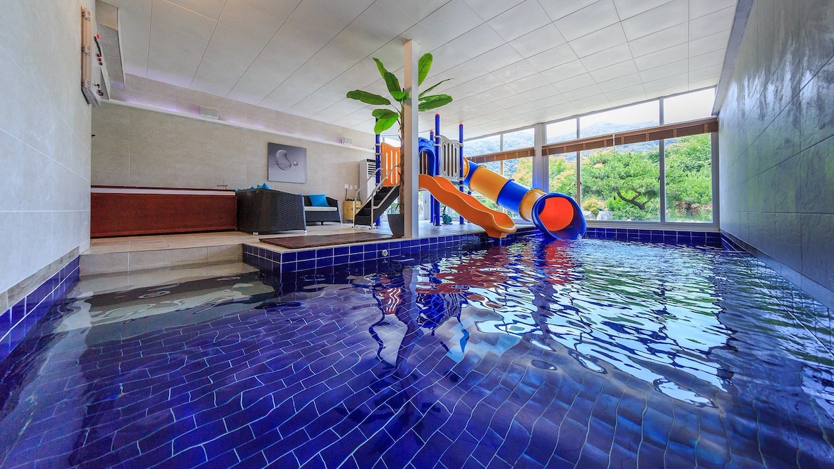 Damia Stay 온수수영장 워터슬라이드 100평형 주거공간 가족 단체 감성여행숙소