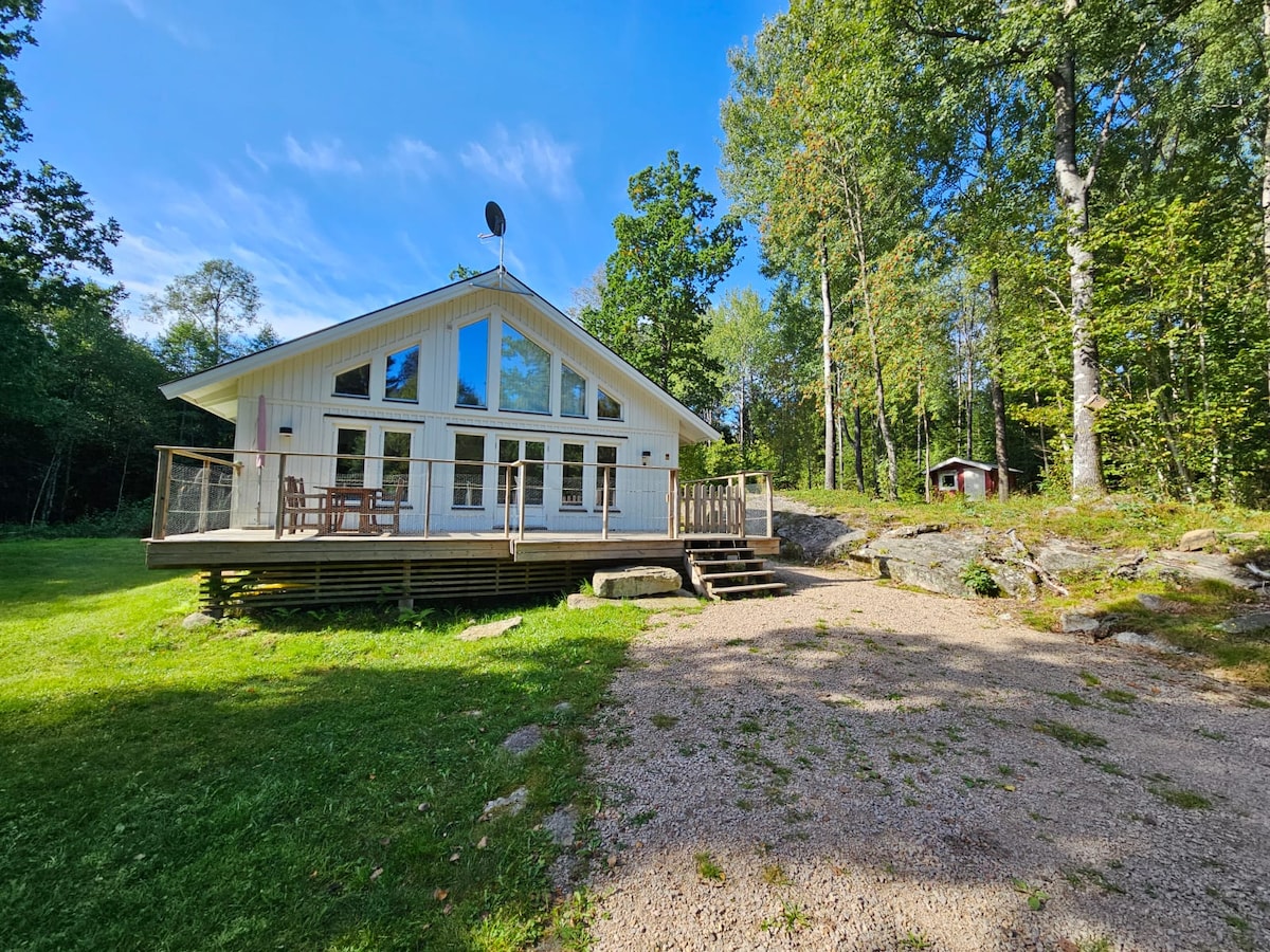 Całkowicie nowo wybudowany dom wakacyjny (2020-2021) położony na cyplu bez sąsiadów w zasiębie wzroku. Prywatna, mała, płytka plaża z łódką i silnikiem elektrycznym. Kominek w dużym domu. Dobre łowienie sandaczy, okoni, szczupaków itp. Dobre Wi-Fi. Sauna. Grzyby i jagody. Własny duży parking na terenie posesji. Atrakcje w pobliżu: kurort górski Isaberg, High Chaparral, Park Narodowy Store Mosse, Ge-Kås Ullared, pizzeria Knystaria, Knystaforsen (biały przewodnik) Tiraholms Fisk Tutaj można mieszkać luksusowo, ale jednocześnie z poczuciem „powrotu do natury”