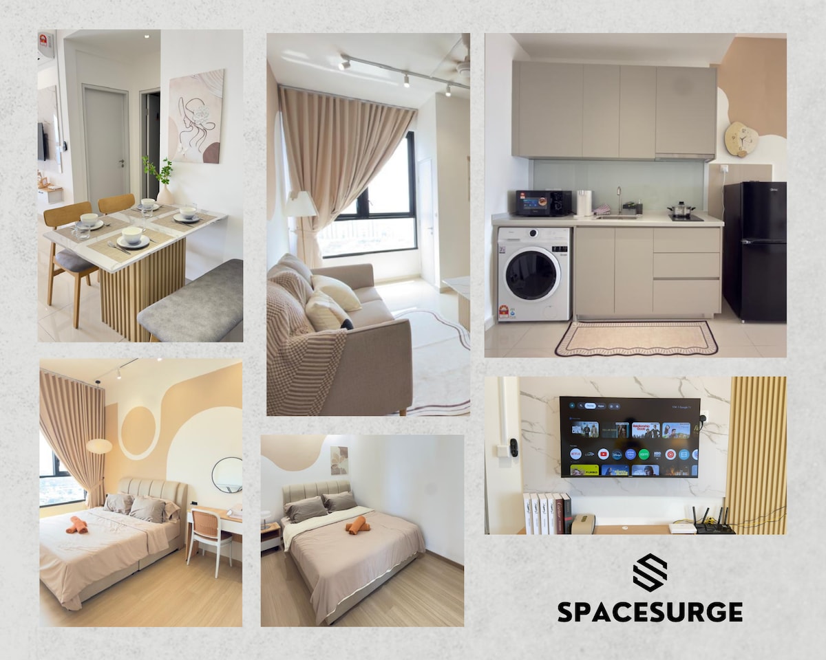 1. Może pomieścić 2~3 osoby (dodatkowy pojedynczy składany materac + poduszka w zestawie)@1 sypialnia + 1 łazienka. 2. Łazienka z podgrzewaczem wody, szamponem, kąpielą do ciała, ręcznikami. 3. 40-calowy telewizor (tymczasowo nie można oglądać kanałów – start 19 października) 4. Bezpłatny parking dla 1 samochodu, 5. Basen, plac zabaw na 2 piętrze 6. W odległości spaceru od i City shah alam. Wygodne, jak 7-11, położone na poziomie UG. 7. Zameldowanie w dowolnym momencie po 15:00 z metodą samodzielnego zameldowania, wymeldowanie w dowolnym momencie przed 12:00. 8. Brak Netflixa,💥 tylko Wi-Fi