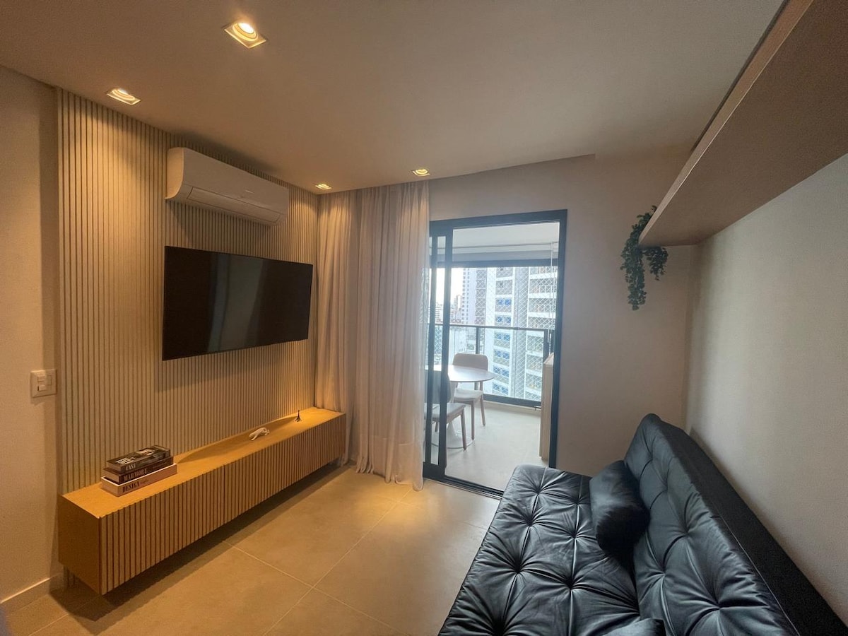 Nowe studio w sercu Itaim, w luksusowym osiedlu w pobliżu parku Ibirapuera w kosmopolitycznym regionie biznesowym, takim jak Faria Lima. - Siłownia z pełnym wyposażeniem fitness; - Basen i bar na dachu; - Grill - Basen na dachu - Solarium; - Sala gier i zabaw; - Sala balowa; - Obszar dla smakoszy; - Pokój zabaw; - Plac zabaw - Wspólna przestrzeń z salonem, pokój spotkań, wspólna praca, kawiarnia, taras. - Wspólna pralnia; *Pościel i ręczniki trousseau i Mmartan; *Wyposażona kuchnia.