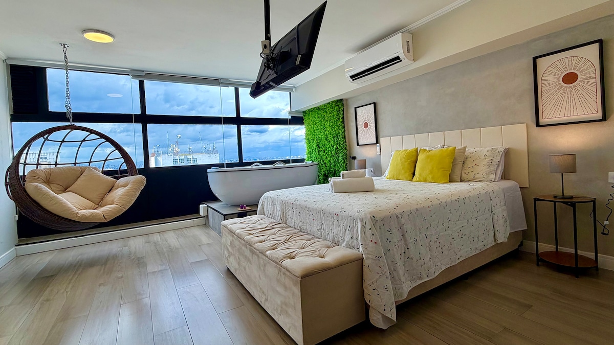 Vista do Mirante to studio pełne uroku i wygody dla par, które mogą cieszyć się wyjątkowym doświadczeniem. Znajduje się w niesamowitej lokalizacji w Historic Center of SP, w Budynku, w którym znajduje się jedna z najważniejszych pocztówek SP, jakim jest Sampa Sky. Z widokiem na odpoczynek na 33. piętrze z niesamowitym widokiem na SP i Serra da Cantareira. Będziesz robić piękne zdjęcia, ponieważ przestrzeń ma wystrój , pięknie zdobioną huśtawkę, kąpiel z hydroterapią i chromoterapią!